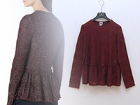 ヒップがぎりぎり隠れるレングス、ボトム箇所は紐でしめてペプラム風デザインに♪ニットのアウターとして合わせると可愛く着ていただけます。比較的薄手ですので、さらに寒い時期にはコートやダウンのインナーとしてもOKです。