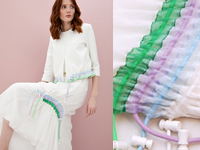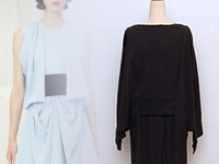 ヒップがちょうど出るレングス、ゆとりのあるフォルム、サイドにつけられたタイをウエストで結んで着用します。ストレッチ性のあるつるんとしたやわらかい素材、比較的厚手の質感です。袖先はリブ素材になっておりまくって着てもOK 定価:66000円