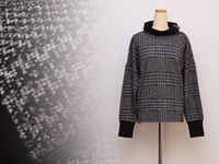 柔らかい素材、ネックサイドにジッパーがありネックは外側に折り返して着ても可愛いです。裾・袖先が黒生地に切り替えられておりおしゃれなパターン、パンツと合わせると可愛いです。柄物ですのでさほど目立ちませんが表面に毛羽立ちがみられます。