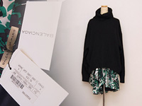 BALENCIAGAのクローバー柄トップスです。白×黒×マスタードのバランスよいカラー、丈は少し長めチュニックくらいの丈となります。ハイブランドならではの抜群にセンスのよい配色・プリント柄で高級感たっぷりの一枚です。こちらダメージはみられませんがストアーにて試着に使用されていたストアーサンプル商品となります。そのため格安となっております。