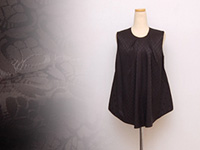 フロント中央が長いデザイン、脇から裾にかけて広がるようなテント風のラインです。前後で異なった生地を使用、高級感たっぷりの素材感です。落ち着いた大人っぽい雰囲気でエレガントな印象、ドレッシーなパンツやスカートと合わせても映えますし、カジュアルなパンツと合わせてもマッチします。