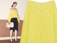 ハイゲージタイプ&厚手の質感の肉厚ニット、タイトすぎずゆるすぎない程よいフォルムです。V開きがわずかに深めに設定されておりますので、太って見えずすっきりとしたライン、また女性らしさもプラス。お色味が苦手な方以外は、どなたでもお似合いになる印象のベーシックなニットです。
