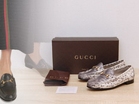 現在も販売中のアイテム、グッチ定番のローファーです。ノーマルなカーフより少し柔らかめで履き心地も◎ トレンド問わず長く履いていただける一足です。Heel:2cm 定価:約12万円