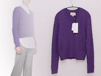 おしゃれな編み目のニット、派手めにみえますが着用すると落ち着いた雰囲気。ベージュやキャメルに合わせると映えるカラー、スカートにもパンツにもどちらでもOKです。こちらアウトレット品になります、軽く糸くずの付着があるように思います。