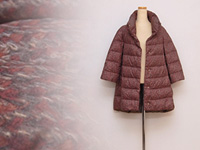 お袖は8分程度でわずかに短いレングス、ヒップがすっぽり隠れるレングスです。わずかにAラインのシルエット、バランスのよいフォルムでスタイルをよく魅せてくれるダウン。中古感はありますが外側は使用感をあまり感じない程度の綺麗なコンディションです。