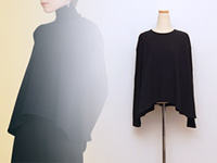 フロント中央が短く、全体的にフレアが綺麗に入るフォルム、お袖が黒・本体がダークネイビーです。お袖はリブニット素材で胴体に比べ細いデザインですので、スタイルがよく見えるブラウスです。お袖がニット素材のため動きやすく着心地のよい一枚です。使用済み感は感じますが特にダメージはない綺麗なお品。定価:25300円