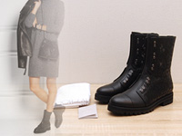 形の綺麗なコンバットブーツ、カジュアル感を抑えた印象のデザインですのであらゆる洋服と合わせやすいです。パンツスタイルからワンピ、ミモレスカートまで何と合わせてもマッチしやすい一足。こちら店頭にて試着に利用されていた現品です、ごく軽い型崩れが一部にあり。Heel:4cm