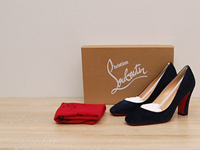 クリスチャンルブタンのパンプスです。ピンヒールでどの角度からみても脚を綺麗に魅せてくれます。インナークッション入りで走れるくらい歩きやすい一足。Heel:10cm