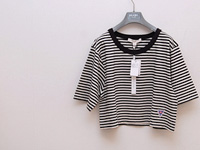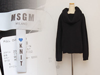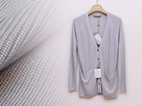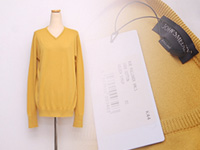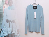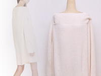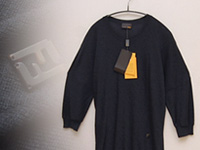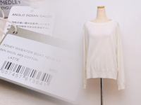 横に広いラウンドネック型、現在も販売中のオンシーズンのアイテムです。凹凸のある立体的な素材で高級感のある一枚。一枚で肌触りも抜群です。定価:44000円