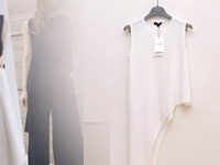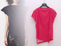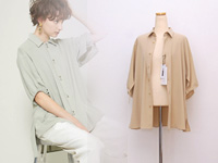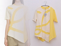 シルエットはAライン、ヒップにかかるレングス、ボディーラインを拾わないゆるめのシルエットです。サイドが長めのレングスでバランスよし、ボトムインしても響かない薄手の素材です。フロント中央部のみボトムにインして着るとバランスよくコーデいただけます。定価:18000円+tax