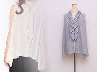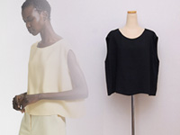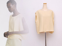 スラブコットンで雰囲気のある素材、ヒップ上部までのレングスです。お袖の形も可愛く大人っぽい印象のタンクトップです。ご自宅手洗いOK