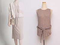 ヒップがぎりぎり隠れるレングス、ボトム箇所は紐でしめてペプラム風デザインに♪ニットのアウターとして合わせると可愛く着ていただけます。比較的薄手ですので、さらに寒い時期にはコートやダウンのインナーとしてもOKです。