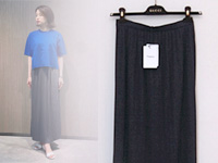 足首より少し短い程度のレングス、タイトめですがボディーに貼りつかない程度のサイズ感、すとんと落ちるラインです。これからの季節はブーツと合わせても可愛いです。定価:23100円