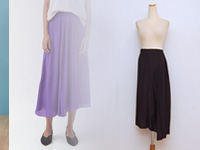 ふくらはぎ中央程度のレングス、トップスはウエストインで着てもアウトで着てもどちらでもOKです。レッグウェアとの相性もよくシーズンレスで着用可。柄も美しく素材にも高級感あり、年齢問わず履いていただけるおしゃれなスカート。定価:760ユーロ