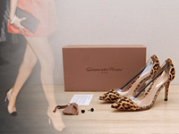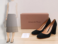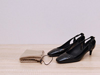 現在も販売中の定番アイテム、定価の値上げが続いておりますのでお買い得かと思います。マットな質感のカーフ、歩きやすくどんな装いにもマッチし、また履いた際の綺麗さも抜群で三拍子そろったシューズ、とてもオススメです。色物のタイツなどはNGですが、薄いストッキング調のベージュのレッグウェアでしたらOK Heel:6.5cm 定価:124300円