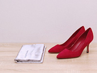 定番アイテム、歩きやすくどんな装いにもマッチし、また履いた際の綺麗さも抜群で三拍子そろったシューズ、とてもオススメです。色物のタイツなどはNGですが、薄いストッキング調のベージュのレッグウェアでしたらOK Heel:8.5cm 定価:126500円