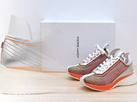 ストレッチ性のある素材で履きやすさ抜群、紐を外さず着用可、とても軽いスニーカーです。カジュアルですが、ダウンコートスタイルやシックな服装にも合う落ち着いた雰囲気、年齢問わず履いていただけます。左足甲箇所に3mm程度の長さの線のような薄い汚れがあります。かなり薄い汚れですがご確認くださいませ。Heel:3.5cm