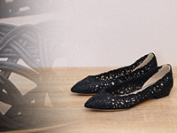 フラットタイプですがカジュアル度を抑えたデザインでシックな服装にもOK フロントトウが狭くなったデザインですのですっきりと足長にみせてくれるフラットシューズ。Heel:1cm