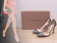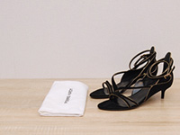 定番アイテム、歩きやすくどんな装いにもマッチし、また履いた際の綺麗さも抜群で三拍子そろったシューズ、とてもオススメです。色物のタイツなどはNGですが、薄いストッキング調のベージュのレッグウェアでしたらOK Heel:8.5cm 定価:124300円
