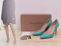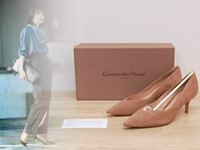 甲のカッティング、さらに足と同化するカラーですので、脚が長く見えるデザイン。とても歩きやすいですのでデイリーにメインで履くパンプスとして最適です。オフィスにもOK heel:5.5cm 定価:105600円