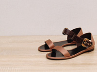 大人っぽい印象のフラットサンダル、金具やストラップ素材にも高級感があります。ストラップは一部ストレッチ素材になっており履きやすさも◎ Heel:1.5cm