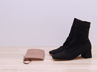 パンプスにソックスが合体したようなフォルムのブーツ、脚をとても綺麗にみせてくれますしどなたでもお似合いになる印象の万能ブーツです。ソックス箇所は密着しますので、くしゅっとさせて長さの調整OK 折り返して短くして履いてもOKです。パンツにも使えますし、ワンピやスカートにもOK Heel:4.5cm
