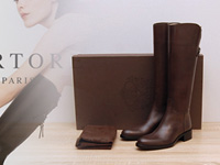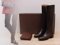 サルトルのライディングブーツです。どの角度からみても美しいブーツ、つま先が少しとがったタイプでスマートな印象。パンツスタイルはもちろんのことドレッシーなスカートにもマッチします。定価:約13万円