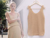 雰囲気のある素材でノーマルなタンクトップとは一味違い、おしゃれにボトムに合わせる物を引き立ててくれます。ロングスカートやワイドめなパンツとの相性が抜群♪ 定価:33000円+tax